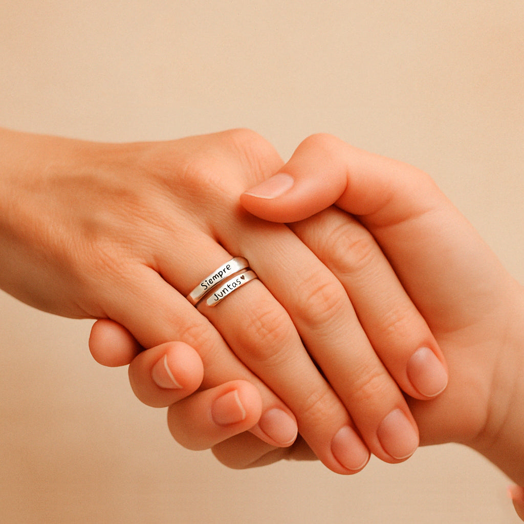 Dedícale un símbolo eterno de amor, con este precioso anillo grabado con "Siempre Juntas", diseñado para recordarle, cada día, lo importante que es para ti.